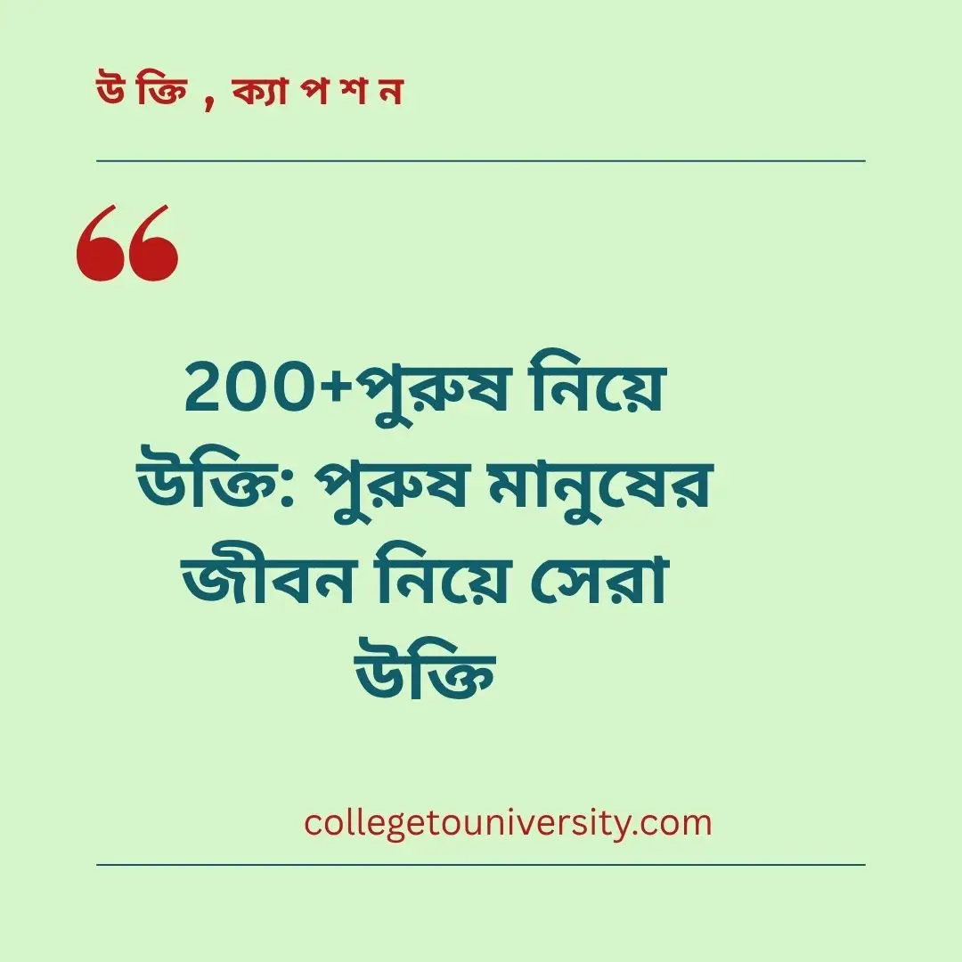 In this blog post, we will talk about পুরুষ নিয়ে উক্তি – পুরুষ মানুষের জীবন নিয়ে সেরা উক্তি।