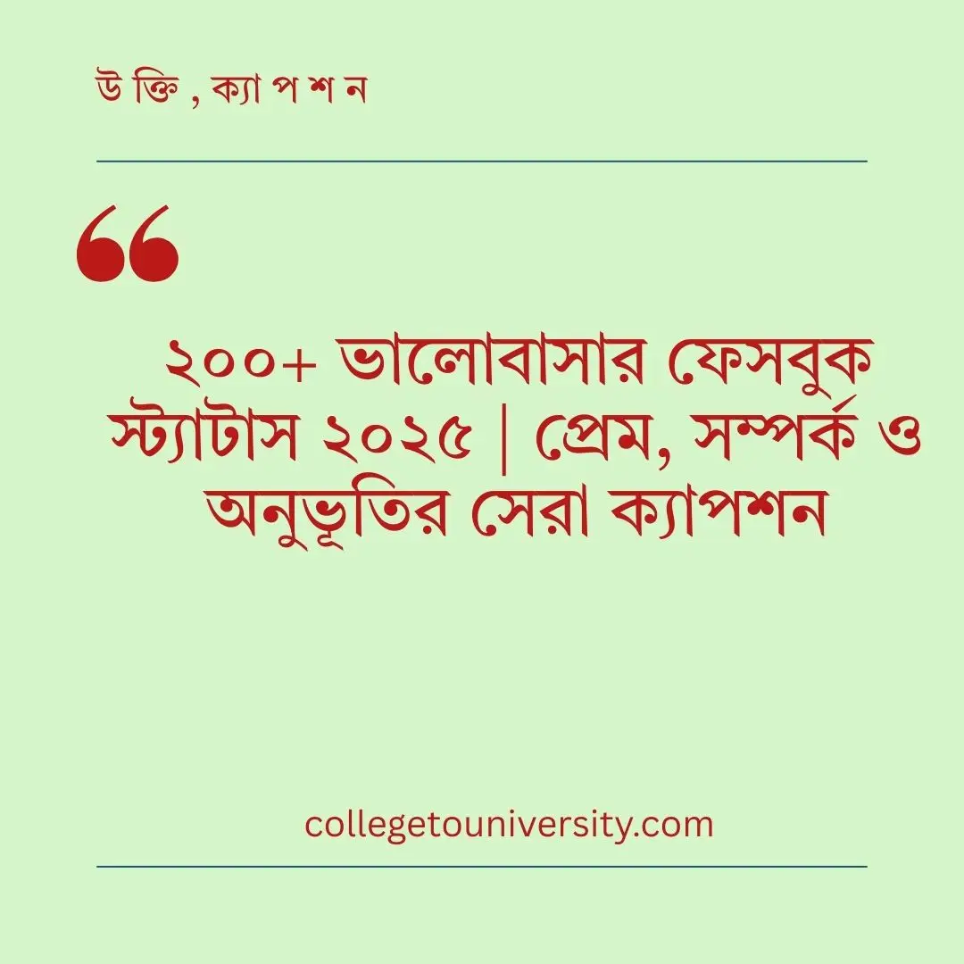 এই লেখায় তোমার জন্য থাকছে ২০০টিরও বেশি রোমান্টিক, আবেগময় ও বাস্তব ভালোবাসার ফেসবুক স্ট্যাটাস, যা তুমি নিজের মুড অনুযায়ী ব্যবহার করতে পারবে।